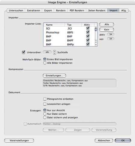 Mehrfach-Bilder: es kann eingestellt werden, ob bei Mehrfach-Bildern (einige Bildformate, z.B. TIFF, können mehrere Bilder in einer Bilddatei enthalten) nur das erste oder alle Bilder importiert werden.