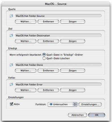 Achtung: Statt der Originaldatei kann auch eine Alias-Datei, die auf die zu verarbeitenden PDF-Datei zeigt, in den Quell-Ordner gelegt werden. Beim Vorfinden einer Alias-Datei wird versucht, die Originaldatei zu finden, um diese zu verarbeiten. Bei aktivierter Option "Quell-Datei Löschen" wird die Alias-Datei, nicht jedoch die Originaldatei gelöscht.