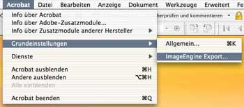 Sie erreichen den Registrierungs-Dialog auch über diesen Weg: Rufen Sie das Menu "Acrobat" > "Grundeinstellungen" > "ImageEngine Export