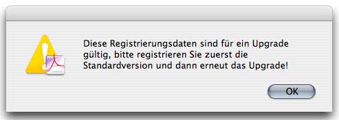 Achtung: Bitte beachten Sie, daß der Registrierungsschlüssel für ein Upgrade nur verwendet werden kann, wenn ImageEngine Export bereits mit einem Registrierungsschlüssel der Version ImageEngine Export 1.xx oder der Edition ImageEngine Export 2.0 Std registriert wurde!