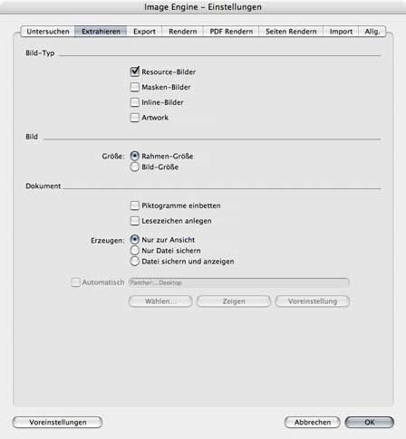 Lesezeichen Anlegen: Wenn diese Einstellung aktiviert ist, erzeugt ImageEngine Lesezeichen.